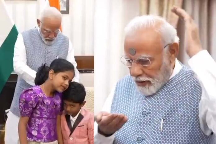 ಒಬ್ಬ ಹುಡುಗಿ ಮತ್ತು ಅವಳ ಕಿರಿಯ ಸಹೋದರ ಪ್ರಧಾನಿ ಮೋದಿ ಅವರನ್ನು ಭೇಟಿ ಮಾಡಲು ಅವರ ನಿವಾಸಕ್ಕೆ ಬಂದಿದ್ದಾರೆ. ಈ ಮಕ್ಕಳು ತಮ್ಮ ಪೋಷಕರೊಂದಿಗೆ ಪ್ರಧಾನಿ ಮೋದಿ ಅವರನ್ನು ಭೇಟಿ ಮಾಡಲು ಬಂದಿದ್ದರು. ಮೊದಮೊದಲು ಮಕ್ಕಳಿಗೆ ತುಂಬಾ ಪ್ರೀತಿ, ಆಶೀರ್ವಾದ ನೀಡಿದ ಮೋದಿ. ನಂತರ ಅವರೊಂದಿಗೆ ಆಟವಾಡಲು ಆರಂಭಿಸಿದರು.