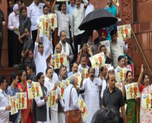 ಕಾಂಗ್ರೆಸ್ ಸಂಸದರಾದ ಗೌರವ್ ಗೊಗೊಯ್, ಮಾಣಿಕ್ಕಮ್ ಟ್ಯಾಗೋರ್, ಹಿಬಿ ಈಡನ್, ಡಿಎಂಕೆ ಸಂಸದ ಕನಿಮೋಳಿ, ಜೆಎಂಎಂ ಸಂಸದ ಮಹುವಾ ಮಾಜಿ, ಆರ್ಜೆಡಿ ಸಂಸದ ಮನೋಜ್ ಝಾ ಸೇರಿದಂತೆ ಅನೇಕ ರಾಜಕೀಯ ನಾಯಕರು ಸಂಸತ್ತಿನಲ್ಲಿ ಇಂದಿನ ಅಧಿವೇಶನ ಪ್ರಾರಂಭವಾಗುವ ಮೊದಲು ಮಳೆಯಲ್ಲಿ ಪ್ರತಿಭಟನೆ ನಡೆಸಿದರು, ಪೋಸ್ಟರ್ಗಳನ್ನು ಹಿಡಿದು ವ್ಯಾಯಾಮವನ್ನು ನಿಲ್ಲಿಸುವಂತೆ ಒತ್ತಾಯಿಸಿದರು.