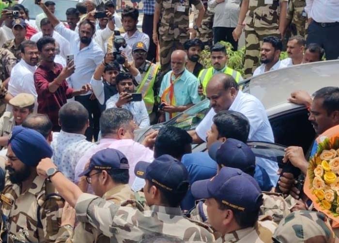 ಕೇಂದ್ರ ಸಚಿವರಾಗಿ ಪ್ರಮಾಣ ವಚನ ಸ್ವೀಕರಿಸಿದ ನಂತರ ಕರ್ನಾಟಕಕ್ಕೆ ಕೇಂದ್ರ ಸಚಿವ ಎಚ್.ಡಿ.ಕುಮಾರಸ್ವಾಮಿ ಅವರ ಮೊದಲ ಭೇಟಿ ಕುರಿತು ಮಾತನಾಡಿದ ಜೆಡಿಎಸ್ ಯುವ ಘಟಕದ ಅಧ್ಯಕ್ಷ ನಿಖಿಲ್ ಕುಮಾರಸ್ವಾಮಿ ಅವರನ್ನು ಭೇಟಿ ಮಾಡಲು ಎಲ್ಲರೂ ಹೆಚ್ಚಿನ ಸಂಖ್ಯೆಯಲ್ಲಿ ಜಮಾಯಿಸಿದ್ದಾರೆ.