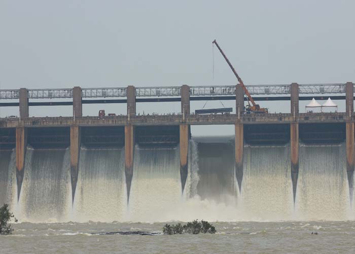 ಹೊಸಪೇಟೆ ಸಮೀಪದ ತುಂಗಭದ್ರಾ ಜಲಾಶಯದಲ್ಲಿ ಐದು ದಿನಗಳ ಹಿಂದೆ ಕ್ರಸ್ಟ್ ಗೇಟ್ವೊಂದು ಕೊಚ್ಚಿ ಹೋಗಿದ್ದರಿಂದ ಅದೇ ಸ್ಥಳದಲ್ಲಿ ತಾತ್ಕಾಲಿಕ ಸ್ಟಾಪ್ ಲಾಗ್ ಗೇಟ್ ಅಳವಡಿಕೆ ಕಾರ್ಯ ಗುರುವಾರ ಆರಂಭಗೊಂಡಿದೆ. ಜಲಾಶಯದಿಂದ ಅಪಾರ ಪ್ರಮಾಣದ ನೀರು ಭೋರ್ಗರೆಯುವ ಮಧ್ಯೆಯೇ ತಾತ್ಕಾಲಿಕ ಗೇಟ್ ಅಳವಡಿಸುವ ಸಾಹಸ ಕಾರ್ಯ ನಡೆದಿದೆ.