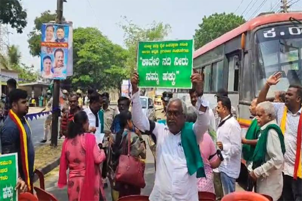 ಕೆಆರ್ಎಸ್ ಅಣೆಕಟ್ಟೆಯಿಂದ ನೀರು ಬಿಡುತ್ತಿರುವ ಹಿನ್ನೆಲೆಯಲ್ಲಿ ಹಿತ ರಕ್ಷಣಾ ಸಮಿತಿ ಹಾಗೂ ಕನ್ನಡ ಸೇನೆಯಿಂದ ರೈತರು ಪ್ರತಿಭಟನೆ ನಡೆಸುತ್ತಿದ್ದಾರೆ. ಬೆಂಗಳೂರು-ಮೈಸೂರು ಹೆದ್ದಾರಿಯಲ್ಲಿ ಕುಳಿತು ಪ್ರತಿಭಟನೆ ನಡೆಸುತ್ತಿದ್ದಾರೆ.