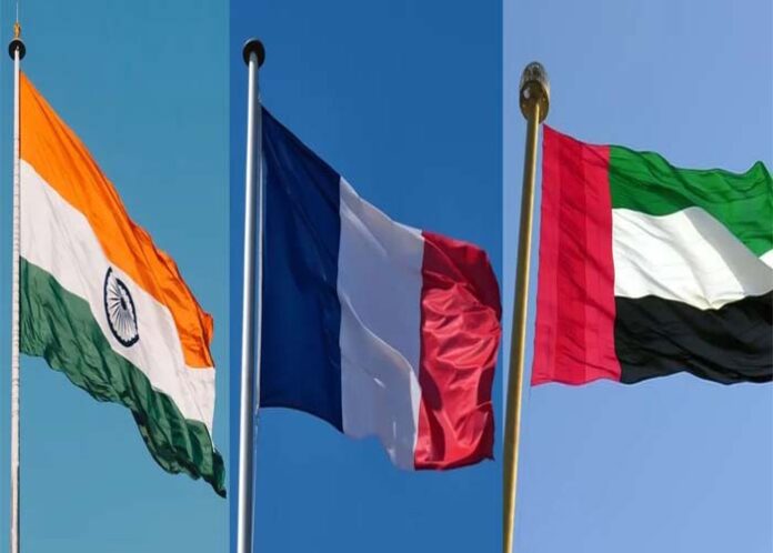 ಭಾರತ, ಫ್ರಾನ್ಸ್ ಮತ್ತು ಯುನೈಟೆಡ್ ಅರಬ್ ಎಮಿರೇಟ್ಸ್ ದೇಶಗಳುಪರಸ್ಪರ ಮಾತುಕತೆ ನಡೆಸಿದ್ದು ಹೊಸ ತ್ರಿಪಕ್ಷೀಯ ಚೌಕಟ್ಟಿನ ಭಾಗವಾಗಿ ಇಂಡೋ-ಪೆಸಿಫಿಕ್ ಪ್ರದೇಶದಲ್ಲಿ ಸಹಕಾರದ ಸಂಭಾವ್ಯ ಕ್ಷೇತ್ರಗಳ ಕುರಿತು ಚರ್ಚಿಸಿವೆ.