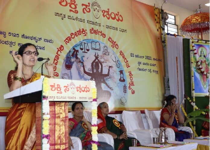 ನಗರದ ವಾಸವಿ ಮಹಲ್ ನಲ್ಲಿ ಸಂಸ್ಕೃತಿ ಟ್ರಸ್ಟ್ ವತಿಯಿಂದ ನಡೆದ ಧಾರವಾಡ ವಿಭಾಗದ ಶಕ್ತಿ ಸಂಚಯ ಜಾಗೃತ ಮಹಿಳೆಯರ ಸಮಾವೇಶದಲ್ಲಿ ಭಾರತೀಯ ಚಿಂತನೆಯಲ್ಲಿ ಮಹಿಳೆ ಕುರಿತು ಅವರು ಮಾತನಾಡಿದರು.