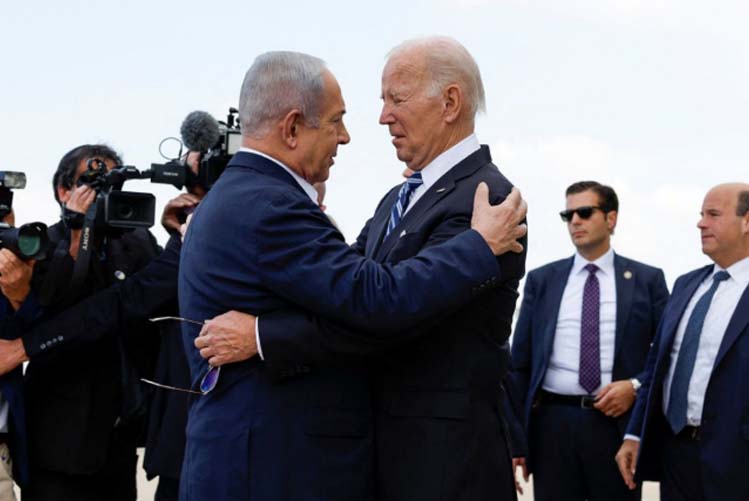 ಬೈಡೆನ್ ಅವರನ್ನು ಇಸ್ರೇಲ್ ಪ್ರಧಾನಿ ಬೆಂಜಮಿನ್ ನೆತನ್ಯಾಹು (Benjamin Netanyahu) ಅವರನ್ನು ಅಪ್ಪಿಕೊಂಡು ಸ್ವಾಗತಿಸಿದರು. ಬಳಿಕ ಗಾಜಾ ಆಸ್ಪತ್ರೆಯ (Gaza Hospital) ಮೇಲೆ ನಡೆದ ರಾಕೆಟ್ ದಾಳಿಯ ಕುರಿತು ನೆತನ್ಯಾಹು ಮತ್ತು ಬೈಡೆನ್ ಮಾತುಕತೆ ನಡೆಸಿದ್ದಾರೆ.