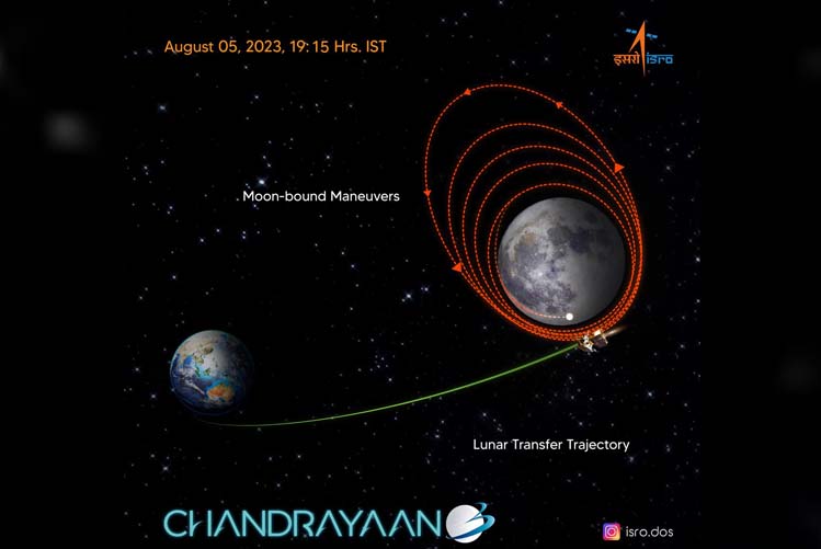 ಆಗಸ್ಟ್ 1 ರಂದು ರಾತ್ರಿ 12 ಗಂಟೆಯ ಸುಮಾರಿಗೆ ಚಂದ್ರಯಾನ-3 ನೌಕೆ ಭೂಮಿಯ ಕಕ್ಷೆಯನ್ನು ತೊರೆದು ಚಂದ್ರನ ಹೆದ್ದಾರಿಗೆ ಪ್ರವೇಶ ಪಡೆದುಕೊಂಡಿತ್ತು. ಇದನ್ನು ಟ್ರಾನ್ಸ್ಲುನಾರ್ ಇಂಜೆಕ್ಷನ್ ಎನ್ನುತ್ತಾರೆ. ಅಂದರೆ, ಚಂದ್ರನ ಕಕ್ಷಗೆ ಸೇರುವ ನಿಟ್ಟಿನಲ್ಲಿ ಬಾಹ್ಯಾಕಾಶ ನೌಕೆಯ ಪ್ರಯಾಣ. ಮುಂದಿನ ಹಂತವಾಗಿ ಚಂದ್ರನ ಕಕ್ಷೆಯಲ್ಲಿ ನೌಕೆ ಐದು ಸುತ್ತು ಮಾಡಲಿದ್ದು, ಆಗಸ್ಟ್ 23ರ ಸಂಜೆ ಚಂದ್ರನ ಮೇಲೆ ಇಳಿಯುವ ಕೆಲಸ ಮಾಡಲಿದೆ.