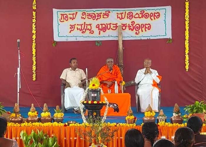 ಗ್ರಾಮ ವಿಕಾಸ ವತಿಯಿಂದ ತಾಲೂಕಿನ ಮರಲಿಂಗನದೊಡ್ಡಿ ಗ್ರಾಮದ ಶ್ರೀ ಮಾಧವ ವಿದ್ಯಾಲಯದಲ್ಲಿ ನಡೆದ ಗ್ರಾಮ ಸಂಗಮ ಕಾರ್ಯಕ್ರಮದಲ್ಲಿ ದಿವ್ಯಸಾನ್ನಿಧ್ಯ ವಹಿಸಿ ಮಾತನಾಡಿದ ಅವರು, ಮಕ್ಕಳಿಗೆ ಸಂಸ್ಕಾರ ನೀಡುವುದರ ಜೊತೆಗೆ ಗ್ರಾಮದಲ್ಲಿ ಪ್ರತಿಯೊಬ್ಬರೂ ನಾಟಿ ಹಸುವನ್ನು ಸಾಕುತ್ತಿದ್ದರು. ಅದರ ಗೊಬ್ಬರದಿಂದ ಬೆಳೆಯನ್ನು ಬೆಳೆಯುತ್ತಿದ್ದರು. ಸನಾತನ ಧರ್ಮದ ಸಂಸ್ಕೃತಿ ಬೆಲೆಸುವುದು ಎಲ್ಲರ ಕರ್ತವ್ಯ. ಅಂತಹ ಶಕ್ತಿ ಸಾಮರ್ಥ್ಯವನ್ನು ಜಗನ್ಮಾತೆ ಭಾರತಾಂಬೆ ನೀಡಲಿ ಎಂದು ತಿಳಿಸಿದರು.