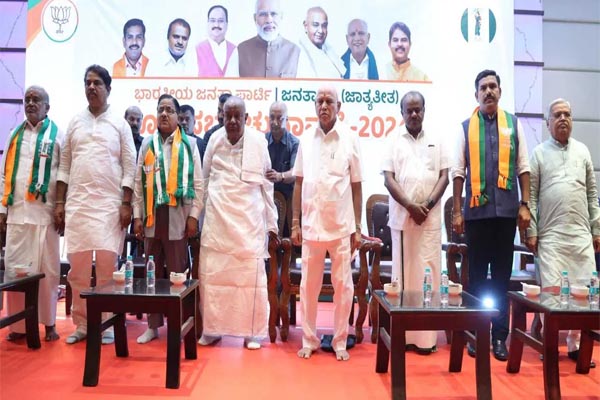 ಜೆಡಿಎಸ್ ವರಿಷ್ಠ ಹೆಚ್.ಡಿ.ದೇವೇಗೌಡ ಪ್ರತಿಕ್ರಿಯಿಸಿದ್ದು, ರಾಜ್ಯದ 28 ಕ್ಷೇತ್ರಗಳನ್ನೂ ಗೆಲ್ಲಬೇಕು ಎಂಬ ಸಂದೇಶ ನೀಡಿದ್ದೇವೆ. ಬಿಜೆಪಿ, ಜೆಡಿಎಸ್ ನಡುವೆ ಇದ್ದ ವ್ಯತ್ಯಾಸ ಮರೆತು ಕೆಲಸ ಮಾಡಬೇಕು. JDS ಬಗ್ಗೆ ಲಘುವಾಗಿ ಮಾತನಾಡಿದ ಕಾಂಗ್ರೆಸ್ಗೆ ಉತ್ತರ ಕೊಟ್ಟಿದ್ದೇನೆ. ಕಾರ್ಯಕರ್ತರು ಒಟ್ಟಾಗಿ ಕೆಲಸ ಮಾಡಬೇಕೆಂದು ಸಂದೇಶ ಕೊಟ್ಟಿದ್ದೇವೆ ಎಂದು ಹೇಳಿದ್ದಾರೆ.