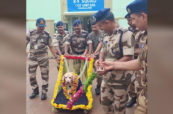 ಮಂಗಳೂರು ಅಂತಾರಾಷ್ಟ್ರೀಯ ವಿಮಾನ ನಿಲ್ದಾಣದ ಭದ್ರತಾ ವಿಭಾಗದಲ್ಲಿನ ಸಿಬ್ಬಂದಿಯಾಗಿ ಕಳೆದ ಎಂಟು ವರ್ಷಗಳ ಕಾಲ ಸೇವೆ ಸಲ್ಲಿಸಿದ್ದ ಕೈಗಾರಿಕಾ ಭದ್ರತಾ ದಳದ ಶ್ವಾನ ಜ್ಯೂಲಿ ನಿವೃತ್ತಿ ಜೀವನಕ್ಕೆ ಕಾಲಿಟ್ಟಿದ್ದಾಳೆ.