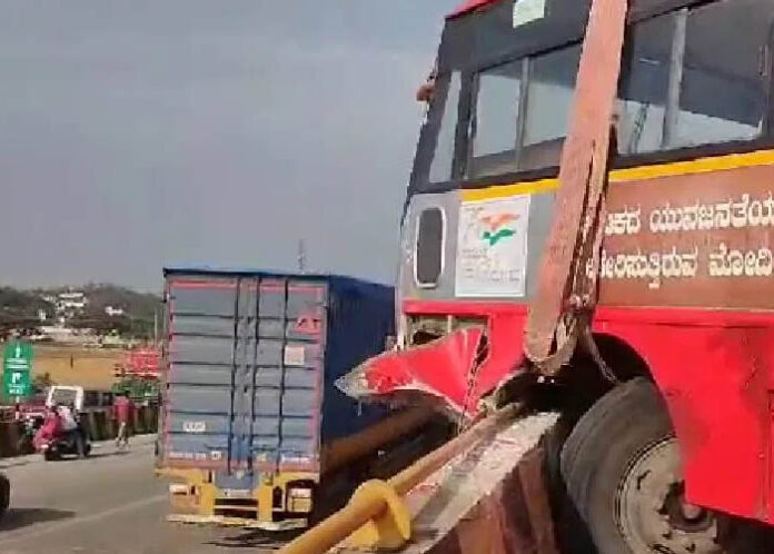 ಡಿವೈಡರ್‌ಗೆ ಡಿಕ್ಕಿ ಹೊಡೆದ ಕೆಎಸ್ ಆರ್‌ಟಿಸಿ ಬಸ್, ಪ್ರಯಾಣಿಕರು ಜಸ್ಟ್ ಮಿಸ್