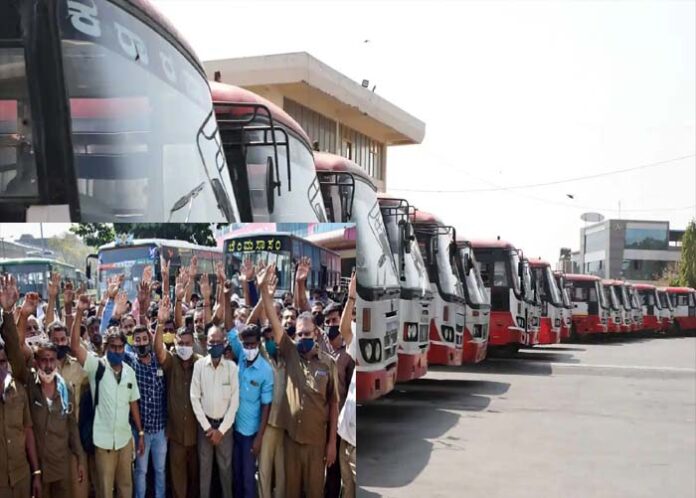 ಸರ್ಕಾರಕ್ಕೆ ಮುಷ್ಕರದ ಬಿಸಿ: ಬೇಡಿಕೆ ಈಡೇರದ ಹಿನ್ನೆಲೆ ರಾಜ್ಯ ಸಾರಿಗೆ ನೌಕರರ ಧರಣಿ
