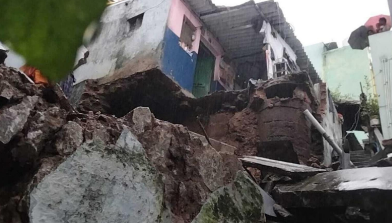 ಮೊಘಲ್ರಾಜಪುರಂ ಕಾಲೋನಿಯ ಸುನ್ನಪುಬಟ್ಟಿಯಲ್ಲಿ ಭೂಕುಸಿತ ಸಂಭವಿಸಿದೆ. ಬೆಟ್ಟದ ಮೇಲಿನಿಂದ ಭಾರೀ ಗಾತ್ರದ ಕಲ್ಲುಗಳು ಮನೆಗಳ ಮೇಲೆ ಬಿದ್ದಿವೆ. ಮನೆ ಸಂಪೂರ್ಣ ನಾಶವಾಗಿದ್ದು, ಒಳಗಿದ್ದ ನಾಲ್ವರು ಸಾವನ್ನಪ್ಪಿದ್ದಾರೆ. ಪೊಲೀಸರ ಪ್ರಕಾರ, ಅಪಘಾತದ ಪರಿಣಾಮವಾಗಿ ಕನಿಷ್ಠ ಮೂರು ಮನೆಗಳಿಗೆ ಭಾಗಶಃ ಹಾನಿಯಾಗಿದೆ.