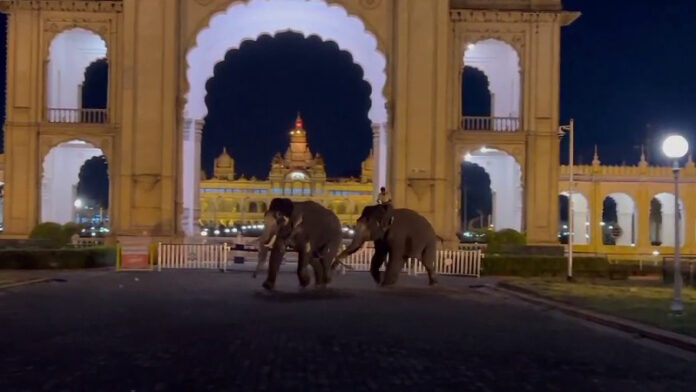 ವಿಶ್ವವಿಖ್ಯಾತ ದಸರಾ ಪ್ರಯುಕ್ತ ಗಜಪಡೆಯ ಆನೆ ಧನಂಜಯ ಮತ್ತೊಂದು ಆನೆ ಕಂಜನ್ ಮೇಲೆ ಏಕಾಏಕಿ ದಾಳಿ ನಡೆಸಿದ ಘಟನೆ ಶುಕ್ರವಾರ ರಾತ್ರಿ ನಡೆದಿದೆ. ದಾಳಿಯಿಂದ ಕಂಜನ್ ಬೆಚ್ಚಿಬಿದ್ದಿದ್ದು, ಆನೆ ಅರಮನೆ ಮೈದಾನದಿಂದ ಓಡಿ ಹೋಗಿದೆ.