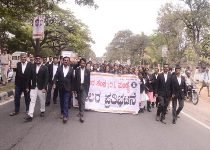 ಚಿಕ್ಕಮಗಳೂರಿನ ಯುವ ವಕೀಲರ ಮೇಲೆ ಪೊಲೀಸರ ಹಲ್ಲೆ ಖಂಡಿಸಿ ಮಂಡ್ಯದಲ್ಲೂ ವಕೀಲರ ಪ್ರತಿಭಟನೆ