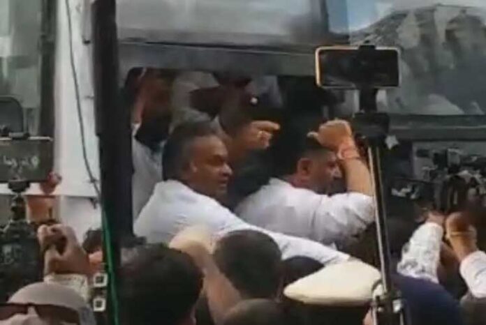 ಈ ವೇಳೆ ಟ್ರಾಫಿಕ್ ಜಾಮ್ ಉಂಟಾಗಿತ್ತು. ಪೊಲೀಸರು ಸ್ಥಳದಲ್ಲಿ ಪರಿಸ್ಥಿತಿ ನಿಭಾಯಿಸಿದರು. ಇದೇ ವೇಳೆ ಮುಖಂಡರನ್ನು ವಶಕ್ಕೆ ಪಡೆದರು.