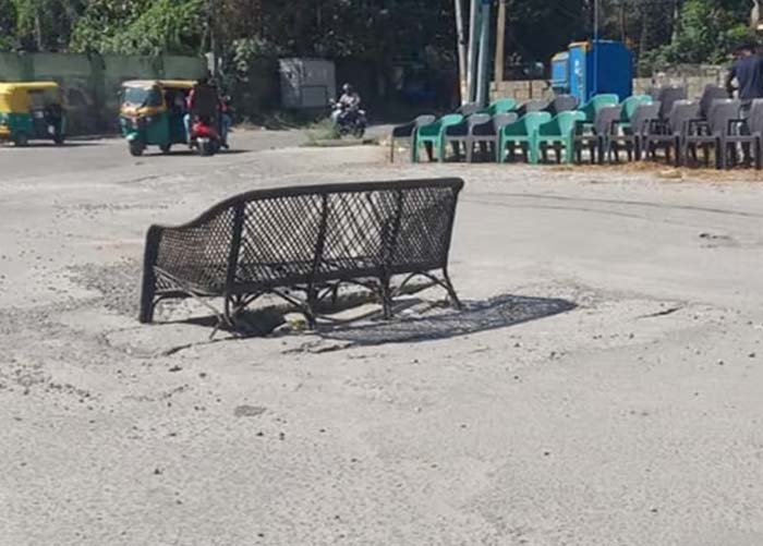 ಯಾರೋ ಭಾನುವಾರ ರಸ್ತೆ ಗುಂಡಿಯ ಮೇಲೆ ಶಿಥಿಲವಾದ, ಬಿದಿರಿನ ಸೋಫಾವನ್ನು ತಂದು ಇರಿಸಿದ್ದಾರೆ, ಇದರಿಂದಾಗಿ ಸಾರ್ವಜನಿಕರು ಆ ಸ್ಥಳದಲ್ಲಿ ಉಂಟಾಗಬಹುದಾದ ಅಪಾಯ ತಪ್ಪಿಸಬಹುದು ಹಾಗೂ ಸುರಕ್ಷಿತವಾಗಿ ಪ್ರಯಾಣಿಸಬಹುದಾಗಿದೆ.. ಈ ಜಂಕ್ಷನ್ ವಿಶೇಷವಾಗಿ ರಾತ್ರಿ ಸಮಯದಲ್ಲಿ ಅಪಾಯ ಕಟ್ಟಿಟ್ಟ ಬುತ್ತಿಯಾಗಿದೆ. ಏಕೆಂದರೆ ಈ ಪ್ರದೇಶದಲ್ಲಿ ಸರಿಯಾಗಿ ಬೆಳಕಿಲ್ಲ ಎಂದು ಸದಸ್ಯರು ವಿವರಿಸಿದ್ದಾರೆ.
