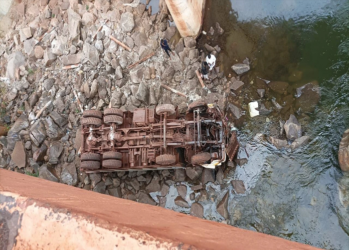 ಮೈನ್ಸ್ ತುಂಬಿದ್ದ ಲಾರಿ ಅತಿವೇಗವಾಗಿ ಬಂದು ಸೇತುವೆಯ ತಡೆಗೋಡೆಗೆ ಡಿಕ್ಕಿಯಾದುದರಿಂದ ಈ ಅವಘಡ ಸಂಭವಿಸಿದೆ ಎಂದು ಪೊಲೀಸರು ತಿಳಿಸಿದ್ದಾರೆ.