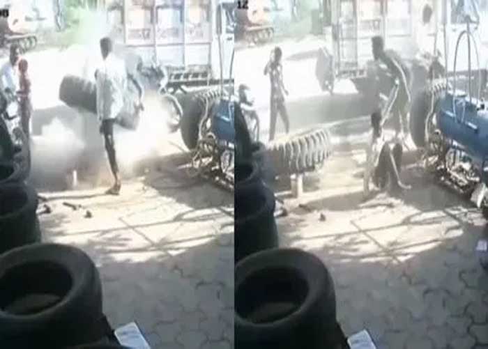 ವೈರಲ್ ಆಗಿರುವ ವಿಡಿಯೋ ಪಂಕ್ಚರ್ ಅಂಗಡಿಗೆ ಸಂಬಂಧಿಸಿದ್ದು. ಪಂಕ್ಚರ್ ಅಂಗಡಿಯೊಂದರಲ್ಲಿ ಇಬ್ಬರು ವ್ಯಕ್ತಿಗಳು ಲಾರಿ ಟೈರ್ ಅನ್ನು ಪಂಕ್ಚರ್ ಹಾಕುತ್ತಿದ್ದಾರೆ. ಅದರಲ್ಲಿ ಗಾಳಿ ತುಂಬುವಾಗ ಒತ್ತಡ ಹೆಚ್ಚಾಗಿ ಟೈರ್ ಇದ್ದಕ್ಕಿದ್ದಂತೆ ಬ್ಲಾಸ್ಟ್ ಆಗಿದೆ. ಇದರಿಂದ ಪಂಕ್ಚರ್ ಮಾಡುತ್ತಿದ್ದವರು ಮೇಲಕ್ಕೆ ಹಾರಿ ಕೆಳಕ್ಕೆ ಬಿದ್ದಿದ್ದಾರೆ.