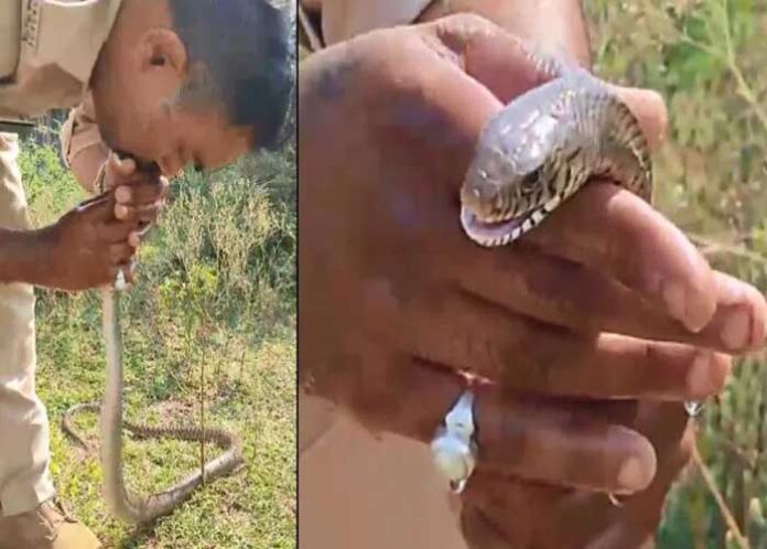 A video from Narmadapuram has gone viral where a police constable is giving CPR to a snake that had fallen unconscious after being drenched in pesticide laced toxic water. pic.twitter.com/tblKDG06X6