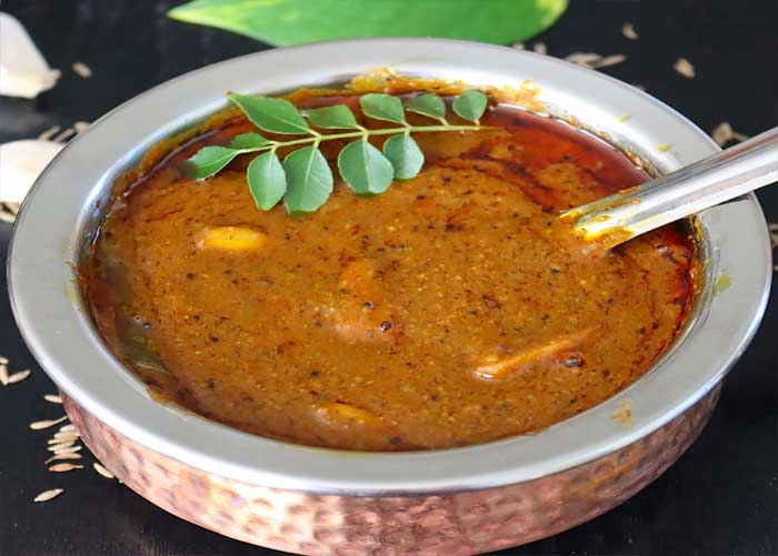 ಬೇಳೆಗಳನ್ನು ಇಂಗು, ಮೆಣಸು, ಸೇರಿಸಿ ಹುರಿಯಿರಿ. ಹುಣಸೆ ಹುಳಿ ಸೇರಿಸಿ ರುಬ್ಬಿಕೊಳ್ಳಿ. ರುಬ್ಬಿದ ಹಿಟ್ಟಿಗೆ ನೀರು ಸೇರಿಸಿ. ರುಚಿಗೆ ಬೇಕಾದಷ್ಟು ಉಪ್ಪು ಸೇರಿಸಿ ಸರಿಯಾಗಿ ಕುದಿಸಿ. ಸಾಸಿವೆ, ಕರಿಬೇವು ಸೇರಿಸಿ ಒಗ್ಗರಣೆ ನೀಡಿ. ತಮಿಳುನಾಡು ಶೈಲಿಯ ಕೊಳಂಬು ರುಚಿಯಾಗಿರುತ್ತದೆ.