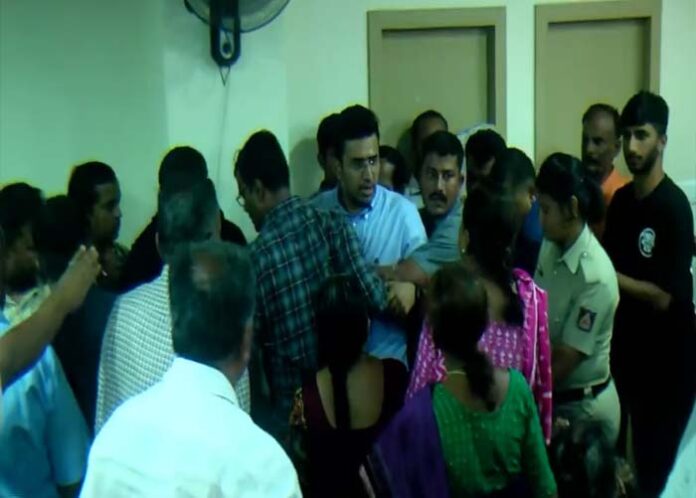 ಬೆಂಗಳೂರಿನ ದಕ್ಷಿಣ ಲೋಕಸಭಾ ಕ್ಷೇತ್ರದಲ್ಲಿ ಠೇವಣಿದಾರರ ಜೊತೆ ತೇಜಸ್ವಿ ಸೂರ್ಯ ಸಭೆ ನಡೆಸಿದ್ದು, ಸಭೆಯಲ್ಲಿ ಗಲಭೆ ಆಗಿದೆ ಎಂದು ಹೇಳಲಾಗಿದೆ. ಇದರಿಂದ ಸಿಟ್ಟಿಗೆದ್ದ ತೇಜಸ್ವಿ ಸೂರ್ಯ ಸಭೆ ಬಿಟ್ಟು ಹೊರಗೆ ಹೋಗಿದ್ದಾರೆ ಎಂದು ಹೇಳಲಾಗಿದೆ.