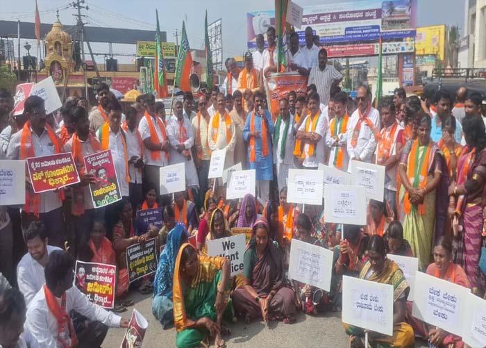 ವಕ್ಫ್ ಕಾಯ್ದೆ ಖಂಡಿಸಿ ನಗರದ ಹೊಸಮನಿ ಸಿದ್ದಪ್ಪ ವೃತ್ತದಲ್ಲಿ ಗುರುವಾರ ಬಿಜೆಪಿ ಕಾರ್ಯಕರ್ತರು ಪ್ರತಿಭಟನೆ ನಡೆಸಿದರು.
