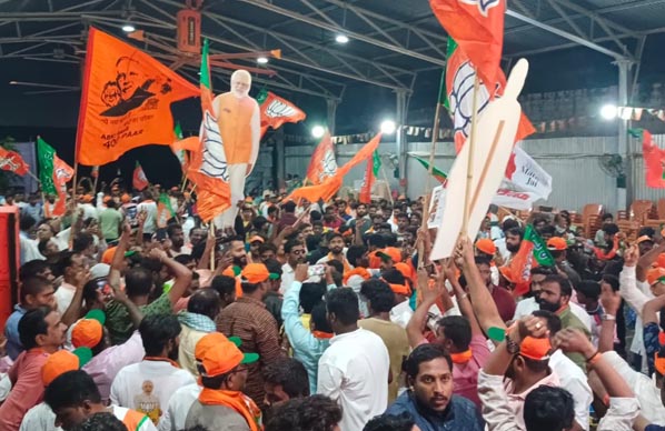 ಬಿಜೆಪಿ ಜಿಲ್ಲಾ ಕಚೇರಿಯಲ್ಲಿ ಜಮಾಯಿಸಿದ ಕಾರ್ಯರ್ತರು ಪರಸ್ಪರ ಸಿಹಿ ಹಂಚಿಕೊoಡು ಸಂಭ್ರಮಿಸಿದರು. ಬಾನಂಗಳದಲ್ಲಿ ಸಿಡಿಮದ್ದುಗಳ ಬೆಳಕಿನ ಚಿತ್ತಾರ ಹಬ್ಬದ ವಾತಾವರಣ ಸೃಷ್ಟಿಸಿತು.