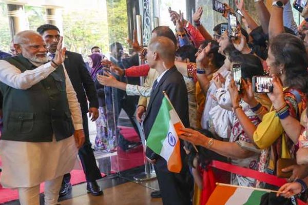 ಪ್ರಧಾನಿ ಮೋದಿ ಅವರು ಬ್ರೂನೆ ರಾಜಧಾನಿ ಬಂದರ್ ಸೆರಿ ಬೆಗವಾನ್ನಲ್ಲಿರುವ ಭವ್ಯ ಹೋಟೆಲ್ಗೆ ಆಗಮಿಸಿದರು. ಅಲ್ಲಿ ವಿವಿಧ ಪ್ರದೇಶಗಳ ಭಾರತೀಯ ವಲಸಿಗರು ಮೋದಿ ಅವರನ್ನು ಅದ್ದೂರಿಯಾಗಿ ಸ್ವಾಗತಿಸಿದರು.