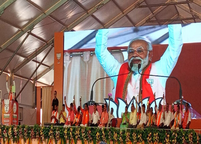 ರಾಜ್ಯ ವಿಧಾನಸಭಾ ಚು‌ನಾವಣೆಗೆ ದಿನಗಣನೆ ಆರಂಭವಾಗಿದ್ದು, ರಾಜಕೀಯ ಪಕ್ಷಗಳಿಂದ ಪ್ರಚಾರ ಕಾರ್ಯ ಬಿರುಸುಗೊಂಡಿದೆ. ಇಂದು ದಕ್ಷಿಣ ಕನ್ನಡ ಜಿಲ್ಲೆಯಲ್ಲಿ ಬಿಜೆಪಿ ಪರ ಪ್ರಚಾರಕ್ಕೆ ಆಗಮಿಸಿದ ಪ್ರಧಾನಿ ನರೇಂದ್ರ ಮೋದಿ ಅವರು ಮಂಗಳೂರು ಹೊರವಲಯದ ಮುಲ್ಕಿ ಕೊಲ್ನಾಡಿನಲ್ಲಿ ಬಿಜೆಪಿಯ ಬೃಹತ್ ಸಮಾವೇಶದಲ್ಲಿ ಪಾಲ್ಗೊಂಡರು.