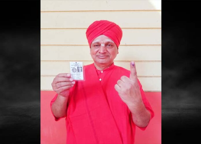 ನಗರದ ಸವದತ್ತಿ ರಸ್ತೆಯ ಮೃತ್ಯುಂಜಯ ಶಾಲೆಯಲ್ಲಿ ತೆರೆದ ಮಟಗಟ್ಟೆ ಕೇಂದ್ರದಲ್ಲಿ ಧಾರವಾಡ ಮುರುಘಾಮಠದ ಡಾ. ಮಲ್ಲಿಕಾರ್ಜುನ ಶ್ರೀಗಳು ಮತ ಚಲಾಯಿಸಿ, ಮತದಾನದ ಮಹತ್ವ ಸಾರಿದರು.