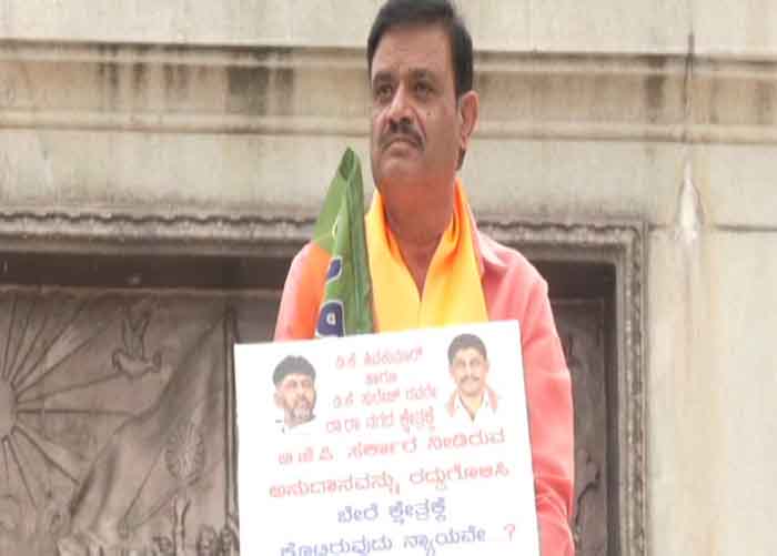 ರಾಜರಾಜೇಶ್ವರಿ ನಗರ ಕ್ಷೇತ್ರಕ್ಕೆ ಅನುದಾನ ಕಡಿತಗೊಳಿಸಲಾಗಿದೆ ಎಂದು ಆರೋಪಿಸಿ ಬಿಜೆಪಿ ಶಾಸಕ ಮುನಿರತ್ನ ಹಾಗೂ ಅವರ ಬೆಂಬಲಿಗರು ಸರ್ಕಾರದ ವಿರುದ್ಧ ಇಂದು ಪ್ರತಿಭಟನೆ ಕೈಗೊಂಡಿದ್ದಾರೆ.