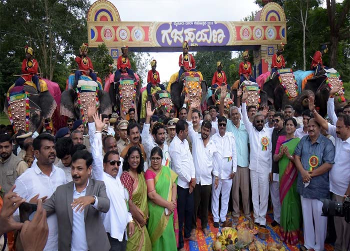 ವಿಶ್ವವಿಖ್ಯಾತ ಮೈಸೂರು ದಸರಾದ ವಿಶೇಷ ಆಕರ್ಷಣೆಯಾದ ಆನೆಗಳನ್ನು ಸ್ವಾಗತಿಸುವ ಗಜಪಯಣಕ್ಕೆ ಬುಧವಾರ ನಾಗರಹೊಳೆ ಅರಣ್ಯ ಪ್ರದೇಶದಲ್ಲಿ ಚಾಲನೆ ನೀಡಲಾಗಿದ್ದು, ಒಂಬತ್ತು ಆನೆಗಳು ಅರಮನೆ ನಗರಿಯತ್ತ ಹೆಜ್ಜೆ ಹಾಕಿದವು.