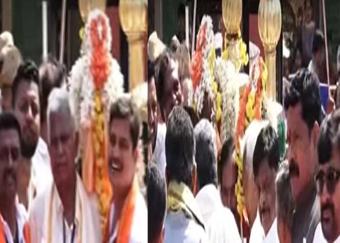 ನಂದಿ ಧ್ವಜ ಮೆರವಣಿಗೆ ಸಾಗುತ್ತಿದ್ದು, ಇದರ ಜೊತೆಗೆ ಸ್ತಬ್ದಚಿತ್ರ, ಕಲಾತಂಡಗಳೂ ಭಾಗಿಯಾಗಿವೆ. ಪ್ರತಿವರ್ಷದಂತೆ ಈ ವರ್ಷವೂ ಕೂಡ ಉಡಿಗಾಲು ಮಹದೇವಪ್ಪ ಅವರ ಕುಟುಂಬಸ್ಥರು ನಂದಿ ಧ್ವಜವನ್ನು ಹೊತ್ತಿದ್ದಾರೆ.