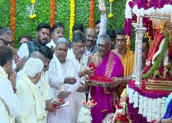 ಇದಕ್ಕೂ ಮುನ್ನ ಚಾಮುಂಡಿ ಬೆಟ್ಟಕ್ಕೆ ತೆರಳಿ ನಾಡದೇವತೆಗೆ ಸಿಎಂ ಸಿದ್ದರಾಮಯ್ಯ, ಡಿಸಿಎಂ ಡಿ ಕೆ ಶಿವಕುಮಾರ್, ಸಾಹಿತಿ ಹಂಪ ನಾಗರಾಜಯ್ಯ ಸೇರಿ ಹಲವರು ವಿಶೇಷ ಪೂಜೆ ಸಲ್ಲಿಸಿ ಪ್ರಾರ್ಥನೆ ಸಲ್ಲಿಸಿದರು. ದಸರಾ ಉದ್ಘಾಟನೆ ಸಮಾರಂಭದಲ್ಲಿ ಸಿಎಂ ಸಿದ್ದರಾಮಯ್ಯ, ಡಿಸಿಎಂ ಡಿಕೆ ಶಿವಕುಮಾರ್, ಸಚಿವ ಮಹದೇವಪ್ಪ ಗಣ್ಯರು ಭಾಗಿಯಾಗಿದ್ದಾರೆ. ಸ್ಥಳೀಯ ಶಾಸಕ ಜಿ.ಟಿ.ದೇವೇಗೌಡ ಅವರು ಕಾರ್ಯಕ್ರಮದ ಅಧ್ಯಕ್ಷತೆ ವಹಿಸಿದ್ದಾರೆ. ಸಮಾರಂಭಕ್ಕೆ ಜಿಲ್ಲಾಡಳಿತದಿಂದ ವಾಟರ್ ಪ್ರೂಫ್ ಪೆಂಡಾಲ್ ನಿರ್ಮಾಣ ಮಾಡಲಾಗಿದೆ.