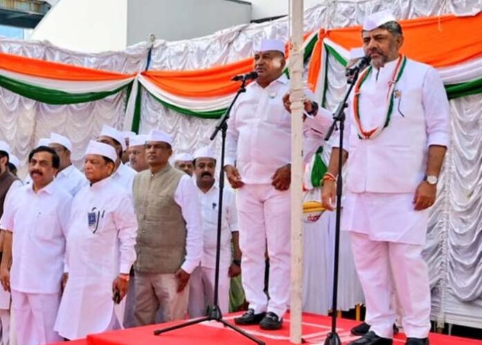 78ನೇ ಸ್ವಾತಂತ್ರ್ಯ ದಿನಾಚರಣೆ ಹಿನ್ನೆಲೆಯಲ್ಲಿ ಕೆಪಿಸಿಸಿ ಕಚೇರಿಯಲ್ಲಿ ಧ್ವಜಾರೋಹಾಣ ನೆರವೇರಿಸಿ ಡಿಕೆ.ಶಿವಕುಮಾರ್ ಅವರು ಮಾತನಾಡಿದರು.