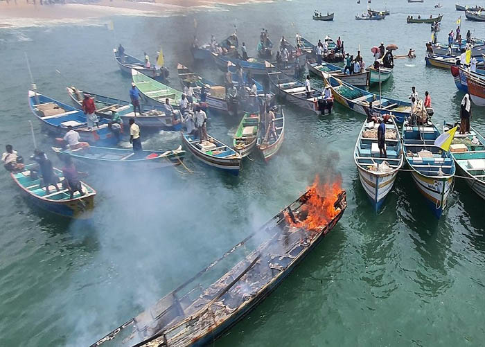 ಬಂದರು ನಿರ್ಮಾಣ ಕಾಮಗಾರಿ ವಿರುದ್ಧ ಆಕ್ರೋಶ ಹೊರಹಾಕಿದ ಮೀನುಗಾರರು ತಮ್ಮ ದೋಣಿಗಳಿಗೆ ಬೆಂಕಿ ಹಚ್ಚಿದ್ದಾರೆ. ಸಮುದ್ರ ತೀರ ಇಲ್ಲದೆ ನಮ್ಮ ಬದುಕು ಇಲ್ಲ, ಇದೀಗ ಬಂದರು ಬಂದರೆ ನಮ್ಮ ತೀರ ಇರುವುದಿಲ್ಲ, ಶಾಶ್ವತವಾಗಿ ಬದುಕು ಕಳೆದುಕೊಳ್ಳುತ್ತೇವೆ ಎಂದು ಹೇಳಿದ್ದಾರೆ.