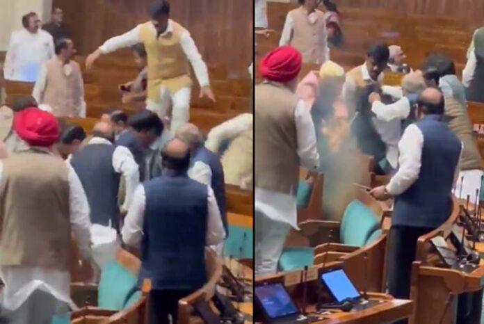 Congress MPs & Hanuman Beniwal are slapping the attackers in the Parliament.