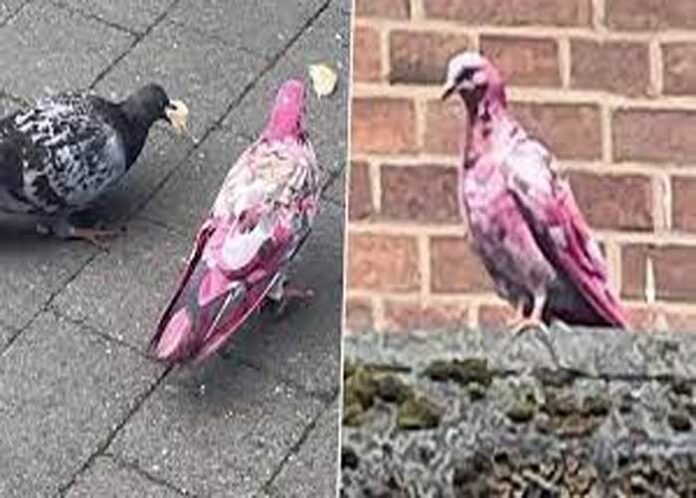 ಪಾರಿವಾಳಗಳ ಎಂದರೆ ಯಾರಿಗಿಷ್ಟ ಇಲ್ಲ ಹೇಳಿ, ರಸ್ತೆಯಲ್ಲಿ ಕಂಡರೆ ಸಾಕು ಅವುಗಳಿಗೆ ಆಹಾರ ರಾಗಿ, ಜೋಳ, ಗೋಧಿ ಮುಂತಾದ ಆಹಾರಗಳನ್ನು ನೀಡಿ ಅವುಗಳೊಂದಿಗೆ ಫೋಟೋಗಳನ್ನು ಕೂಡ ತೆಗೆದುಕೊಳುತ್ತಾರೆ. ಸಾಮಾನ್ಯವಾಗಿ ಪಾರಿವಾಳಗಳು ಕಣ್ಣಿಗೆ ಬಿಳಿ, ಕಪ್ಪು, ಬೂದು ಬಣ್ಣದಲ್ಲಿರುತ್ತವೆ. ಆದರೆ ಈಗ ನೆಟ್‌ನಲ್ಲಿ ಕಾಣಿಸಿಕೊಂಡಿರುವ ಪಾರಿವಾಳದ ಫೋಟೋವೊಂದು ಅಚ್ಚರಿ ಮೂಡಿಸಿದೆ. ಈ ಪಾರಿವಾಳ ಗುಲಾಬಿ ಬಣ್ಣದಲ್ಲಿ ಕಂಡುಬಂದಿದ್ದು, ಯುಕೆಯ ಗ್ರೇಟ್ ಮ್ಯಾಂಚೆಸ್ಟರ್‌ನ ಟೌನ್ ಸೆಂಟರ್ ಬಳಿ ಈ ವಿಚಿತ್ರ ಪಾರಿವಾಳವನ್ನು ಗುರುತಿಸಲಾಗಿದೆ. ರಸ್ತೆಯಲ್ಲಿ ಜನ ಓಡಾಡುವಾಗ ಈ ಹಕ್ಕಿ ಕಾಣಿಸಿಕೊಂಡಿದೆ.