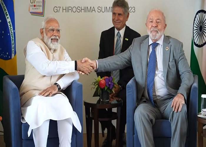 ಜಪಾನಿನ ಹಿರೋಷಿಮಾದಲ್ಲಿ ನಡೆಯುತ್ತಿರುವ ಜಿ7 ಶೃಂಗಸಭೆಯಲ್ಲಿ ಪಾಲ್ಗೊಂಡ ಪ್ರಧಾನಿ ನರೇಂದ್ರ ಮೋದಿ ಬ್ರೆಜಿಲ್ ಅಧ್ಯಕ್ಷ ಲುಲಾ ಡಾ ಸಿಲ್ವಾ ಅವರೊಂದಿಗೆ ಭಾನುವಾರ ದ್ವಿಪಕ್ಷೀಯ ಮಾತುಕತೆ ನಡೆಸಿದರು.
