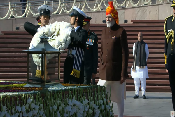 ದೆಹಲಿಯಲ್ಲಿ ಗಣರಾಜ್ಯೋತ್ಸವದ ಸಂಭ್ರಮವನ್ನು ಗುರುತಿಸುವ ಮೂಲಕ ರಾಷ್ಟ್ರೀಯ ಯುದ್ಧ ಸ್ಮಾರಕದಲ್ಲಿ ಪ್ರಧಾನಿ ನರೇಂದ್ರ ಮೋದಿ ಅವರು ದೇಶಕ್ಕಾಗಿ ಪ್ರಾಣ ತ್ಯಾಗ ಮಾಡಿದ ವೀರ ಯೋಧರಿಗೆ ಭಾವಪೂರ್ಣ ಶ್ರದ್ಧಾಂಜಲಿ ಸಲ್ಲಿಸಿದರು.