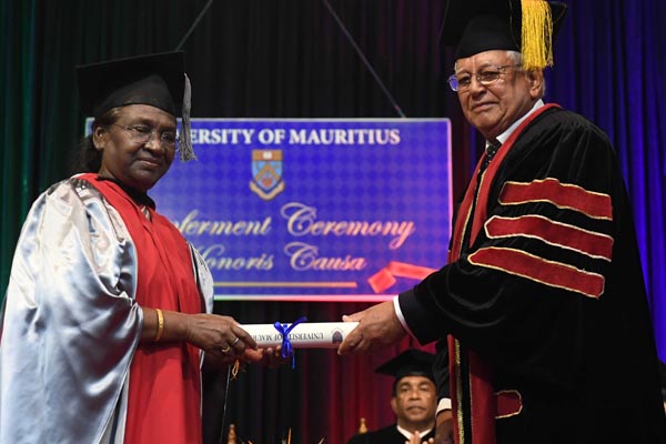 ಉಭಯ ದೇಶಗಳ ನಡುವಿನ ದ್ವಿಪಕ್ಷೀಯ ಸಂಬಂಧದ ಆಳವಾದ ಆಳವನ್ನು ಗುರುತಿಸಿ ರಾಷ್ಟ್ರಪತಿಗಳಿಗೆ ಈ ಪ್ರತಿಷ್ಠಿತ ಗೌರವವನ್ನು ನೀಡಲಾಯಿತು.ಮಾರಿಷಸ್ ವಿಶ್ವವಿದ್ಯಾಲಯದಲ್ಲಿ ನಡೆದ ಅಧಿಕೃತ ಸಮಾರಂಭದಲ್ಲಿ ಅಧ್ಯಕ್ಷ ಮುರ್ಮು ಅವರಿಗೆ ಡಾಕ್ಟರೇಟ್ ನೀಡಿ ಗೌರವಿಸಲಾಯಿತು.