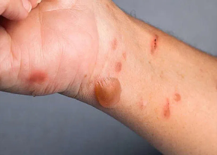 > ಸೋಂಕಿತ ವ್ಯಕ್ತಿಗಳಿಗೆ ದದ್ದುಗಳಿಂದ ಉಂಟಾಗುವ ಕಿರಿಕಿರಿಯನ್ನು ನಿವಾರಿಸಲು ಬಿಸಿನೀರಿನ ಬಟ್ಟೆಯಿಂದ ಒರೆಬೇಕು.