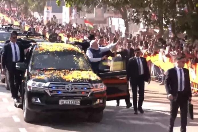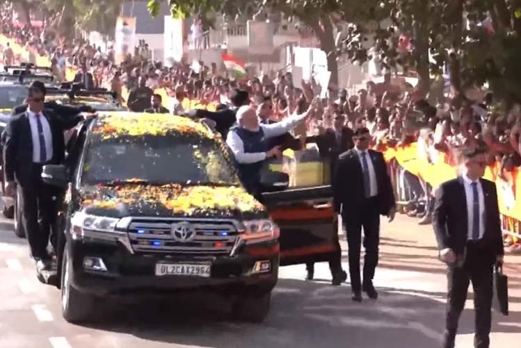 ಮೋದಿ ಅವರು ತಮ್ಮ ಕಾರಿನಲ್ಲಿ ರೋಡ್ ಶೋ ಮೂಲಕ ಬರುತ್ತಿದ್ದರೆ, ಬ್ಯಾರಿಕೇಡ್ ಆಚೆಗೆ ನಿಂತಿದ್ದ ಅಭಿಮಾನಿಗಳು, ಸಾರ್ವಜನಿಕರಿಂದ ಜಯಘೋಷಗಳೇ ಮೊಳಗಿದವು. ಹೂವುಗಳನ್ನು ಮೋದಿಯತ್ತ ಹಾಕಿದರು, ಪುಷ್ಪವೃಷ್ಟಿಯಲ್ಲಿ ನರೇಂದ್ರ ಮೋದಿ ಮುಳುಗಿಹೋದರು.