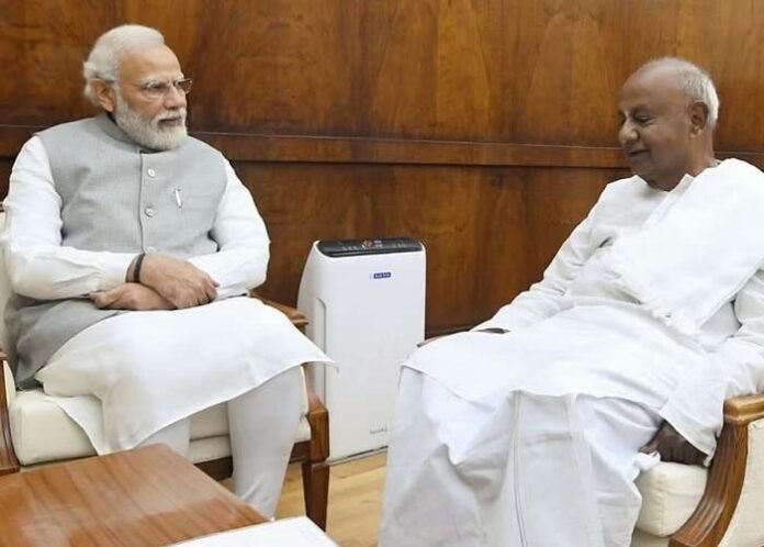 ಪ್ರಧಾನಿ ನರೇಂದ್ರ ಮೋದಿ ತಮಗೆ ಕರೆ ಮಾಡಿ ಹೊಸ ಸರ್ಕಾರದ ಬಗ್ಗೆ ತಮ್ಮ ಆಲೋಚನೆಗಳನ್ನು ಹಂಚಿಕೊಂಡಿದ್ದಾರೆ ಎಂದು ಜೆಡಿಎಸ್ ಮುಖಂಡ ಮತ್ತು ಮಾಜಿ ಪ್ರಧಾನಿ ಎಚ್‌ಡಿ ದೇವೇಗೌಡ ಟ್ವೀಟ್‌ ಮೂಲಕ ಮಾಹಿತಿ ನೀಡಿದ್ದಾರೆ.