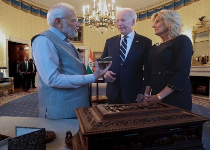 ಪ್ರಧಾನಿ ನರೇಂದ್ರ ಮೋದಿ ಅಮೆರಿಕ ಪ್ರವಾಸ ಕೈಗೊಂಡಿದ್ದು, ಅಮೆರಿಕ ಅಧ್ಯಕ್ಷ ಜೋ ಬಿಡೆನ್ ಹಾಗೂ ಅವರ ಪತ್ನಿ ಜಿಲ್ ಬಿಡೆನ್ ಅವರಿಗೆ ವಿಶೇಷವಾದ ಉಡುಗೊರೆಯೊಂದನ್ನು ನೀಡಿದ್ದಾರೆ.