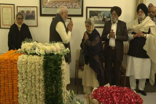 ಮಾಜಿ ಪ್ರಧಾನಿ ಮನಮೋಹನ್ ಸಿಂಗ್ ಅವರ ದೆಹಲಿಯ ನಿವಾಸದಲ್ಲಿ ಪ್ರಧಾನಿ ನರೇಂದ್ರ ಮೋದಿ ಅಂತಿಮ ನಮನ ಸಲ್ಲಿಸಿದರು. ಮನಮೋಹನ್ ಸಿಂಗ್ ಅವರ ನಿಧನದ ಹಿನ್ನೆಲೆಯಲ್ಲಿ ಅವರ ಕುಟುಂಬಕ್ಕೆ ಪ್ರಧಾನಿ ಸಂತಾಪ ಸೂಚಿಸಿದರು.