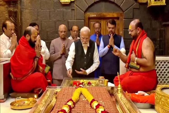 ಮಹಾರಾಷ್ಟ್ರದ ಶಿರಡಿಯಲ್ಲಿರುವ ಶ್ರೀ ಸಾಯಿಬಾಬಾ ದೇವಸ್ಥಾನಕ್ಕೆ ಪ್ರಧಾನಿ ನರೇಂದ್ರ ಮೋದಿ ಭೇಟಿ ನೀಡಿದರು.