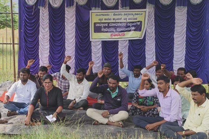 ಪ್ರತಿಭಟನೆಯಲ್ಲಿ ಸಿಬ್ಬಂದಿಗಳಾದ ಚಂದ್ರಿಕಾ, ರಾಧಿಕಾ, ಚೈತ್ರಾ ,ಗಣೇಶ್ ಮತ್ತಿತರರು ಇದ್ದರು.