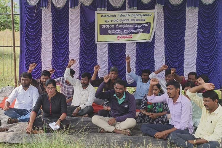 ಚಿಕ್ಕ ಅಳುವಾರದಲ್ಲಿರುವ ಕೊಡಗು ವಿಶ್ವವಿದ್ಯಾಲಯದ ಜ್ಞಾನ ಕಾವೇರಿ ಸ್ನಾತಕೋತ್ತರ ಕೇಂದ್ರದಲ್ಲಿ ಸೇವೆ ಸಲ್ಲಿಸುತ್ತಿದ್ದ ತಾತ್ಕಾಲಿಕ ಬೋಧಕೇತರ ಸಿಬ್ಬಂದಿಗಳ ಸೇವೆಯನ್ನು ಮುಂದುವರೆಸುವಂತೆ ಒತ್ತಾಯಿಸಿ ಕೇಂದ್ರದ ಹೊರ ಆವರಣದಲ್ಲಿ 24 ಬೋಧಕೇತರ ಸಿಬ್ಬಂದಿಗಳು ಪ್ರತಿಭಟನೆ ನಡೆಸಿದರು.