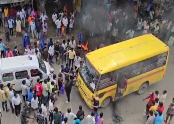 ಶಾಲಾ ಬಸ್ಸನ್ನು ನೋಡಿದ ಕೂಡಲೇ ಸುತ್ತುವರೆದ ಪ್ರತಿಭಟನಾಕಾರರು ಚಕ್ರದ ಅಡಿಗೆ ಬೆಂಕಿ ಹಚ್ಚಲು ಮುಂದಾಗಿದ್ದಾರೆ. ಕೂಡಲೇ ಪೊಲೀಸರು ಮಧ್ಯಪ್ರವೇಶಿಸಿ ಬೆಂಕಿಯನ್ನು ತೆಗೆದಿದ್ದಾರೆ. ಪ್ರತಿಭಟನಾಕಾರರು ಚಕ್ರದ ಅಡಿಗೆ ಬೆಂಕಿ ಹಾಕುತ್ತಿರುವ ವಿಡಿಯೋ ಈಗ ಸಾಮಾಜಿಕ ಜಾಲತಾಣದಲ್ಲಿ ವೈರಲ್ ಆಗಿದೆ.