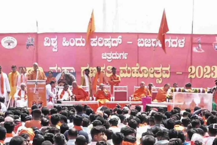 ವಿಶ್ವ ಹಿಂದೂ ಪರಿಷತ್ – ಬಜರಂಗದಳ ಸಂಯುಕ್ತಾಶ್ರಯದಲ್ಲಿ ಭಾನುವಾರ ನಡೆದ ಬೃಹತ್ ಶೋಭಾಯಾತ್ರೆ ಕಾರ್ಯಕ್ರಮದಲ್ಲಿ ಭಾಗವಹಿಸಿ ಮಾತನಾಡಿದ ಅವರು, ನಮ್ಮ ಧರ್ಮದಲ್ಲೇ ಹುಟ್ಟಿದ ಅನೇಕರು ಸನಾತನ ಧರ್ಮವನ್ನು ನಿಂದಿಸುತ್ತಾ ಬಂದಿದ್ದಾರೆ. ಈಗ ಉದಯನಿಧಿ ಸ್ಟಾಲಿನ್ ಸನಾತನ ಧರ್ಮದ ಬಗ್ಗೆ ಮಾತನಾಡುತ್ತಿದ್ದಾನೆ. ಅವರ ತಾತ, ಮುತ್ತಾತಂದಿರು ಮಾಡಲಾಗದ ಕೆಲಸವನ್ನು ಈಗ ಇವನು ಮಾಡಲು ಮುಂದಾಗಿದ್ದಾನೆ. ಇಂಥವರಿಂದ ಸನಾತನ ಧರ್ಮಕ್ಕೆ ಯಾವುದೇ ತೊಂದರೆ ಇಲ್ಲ ಎಂದರು.